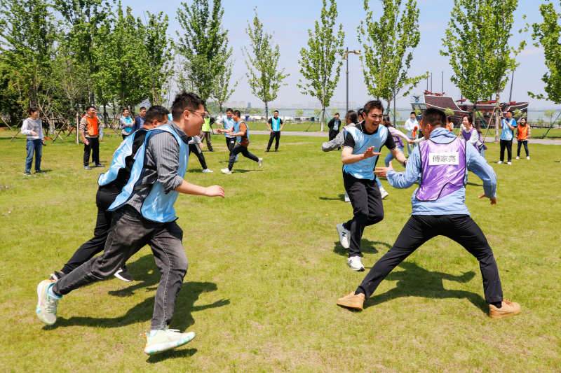 撕名牌大戰(zhàn)。在寬闊的草坪上,參賽選手們相互追逐,手腳并用撕下對手背后的名牌。現(xiàn)場成功撕下名牌的歡呼聲、加油鼓勁的吶喊聲此起彼伏,展現(xiàn)了參賽隊員的頑強拼搏精神和積極進取的斗志。