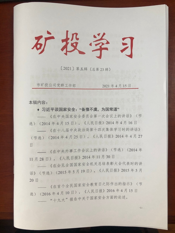 一是以《礦投學(xué)習(xí)》為載體,詳細(xì)整理了習(xí)近平總書記關(guān)于國家安全、網(wǎng)絡(luò)安全等方面的重要論述摘要,并印發(fā)至各部室、各子公司。有助于全部職工系統(tǒng)學(xué)習(xí)、理解、掌握習(xí)近平總書記關(guān)于總體國家安全觀的重要論述。